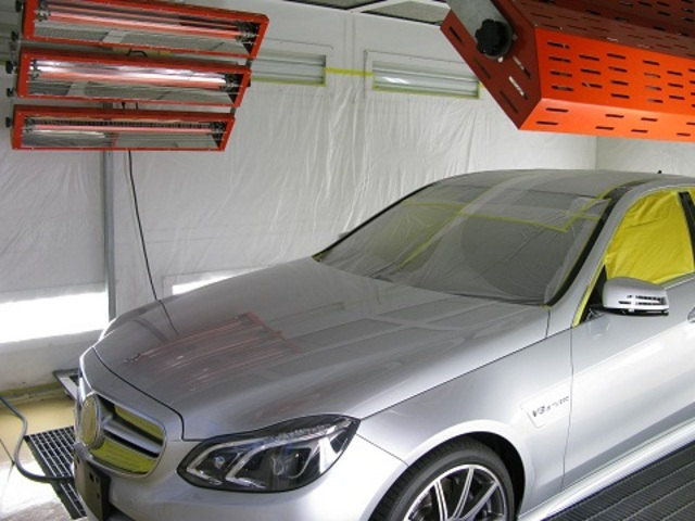 そして更に左写真で解かるように遠赤外線で焼付け乾燥して 一晩ブース内で寝かして完成となります