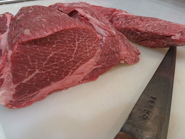 本番に向けてトレーニングのためA5のヘレの頭をブロックで購入して料理しているところです (笑)