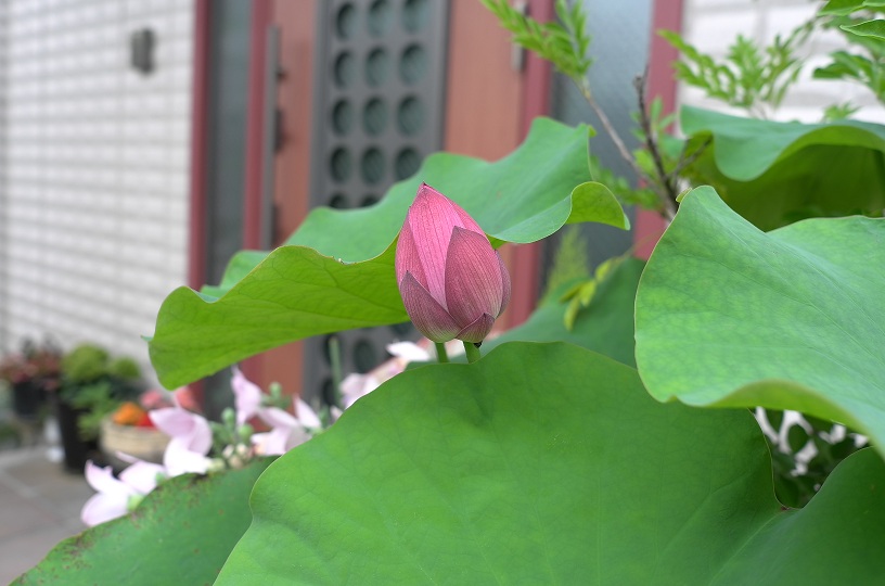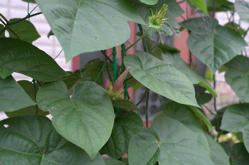 その写真はさすがに載せられないので玄関の左右にあるハスと朝顔を今朝写して見ました。