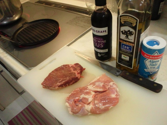真ん中の写真、国産牛のヘレとちょっと上等の鳥肉