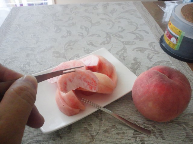 通常の桃の食感ではなく、みずみずしい柿や、大根の酢漬けのような食感が楽しめるものです。
