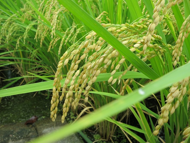 近くで見て見ると既に穂が実って、垂れています。