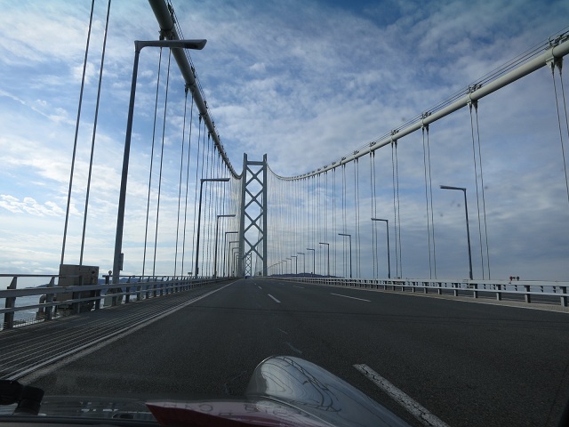 写真は前後しますが舞子ビラをスタートして、淡路島にわたる橋の上でのコドライバー(家内)が写してくれたポルシェらしいショットです。
