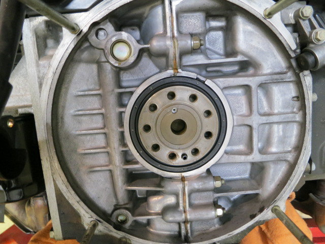 写真は、リア側クランクシール、ブローバイ、オイルプレッシャガスケット、スパークプラグ交換作業になります。