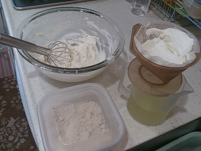 今回は 左の写真水切りヨーグルトを加えての製作です