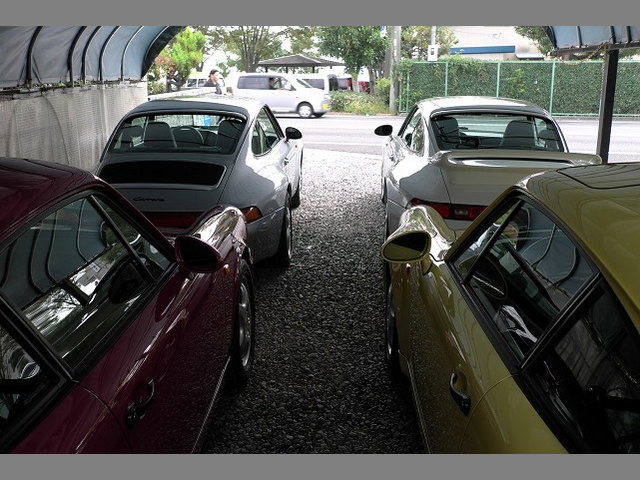 そしてふっと現在クレヨン敷地内に997のターボ、GT3のスピードイエローがあり、さらに997ホワイトターボ、997マカダミアカレラS、のなんと四台の997がある事に気が付き、太陽が山に沈む17時前後を狙って写真を撮りました