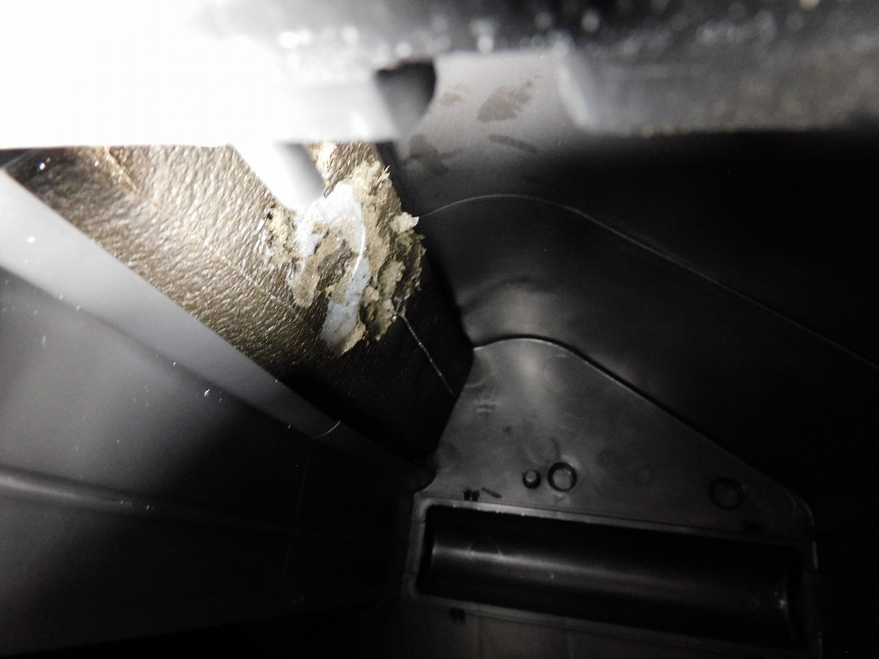 中をのぞくと、こんな感じでスポンジがはがれていますね。