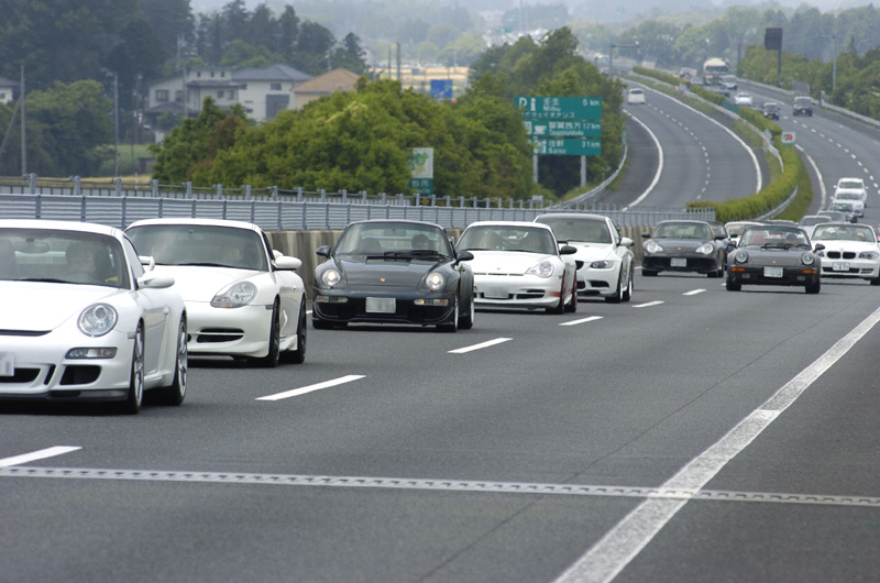 たまに前の方を走ってみたり、後ろの方からついていき前に連なるポルシェを見たり・・・